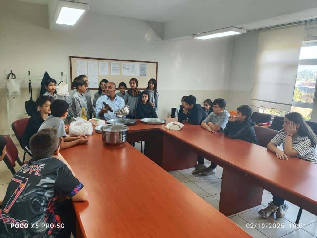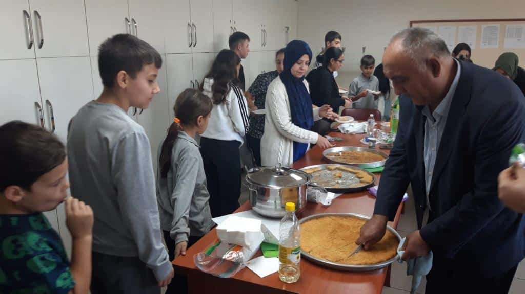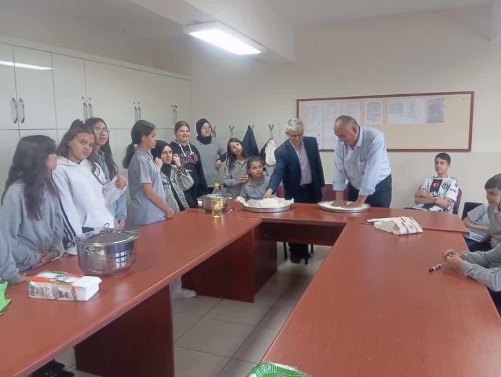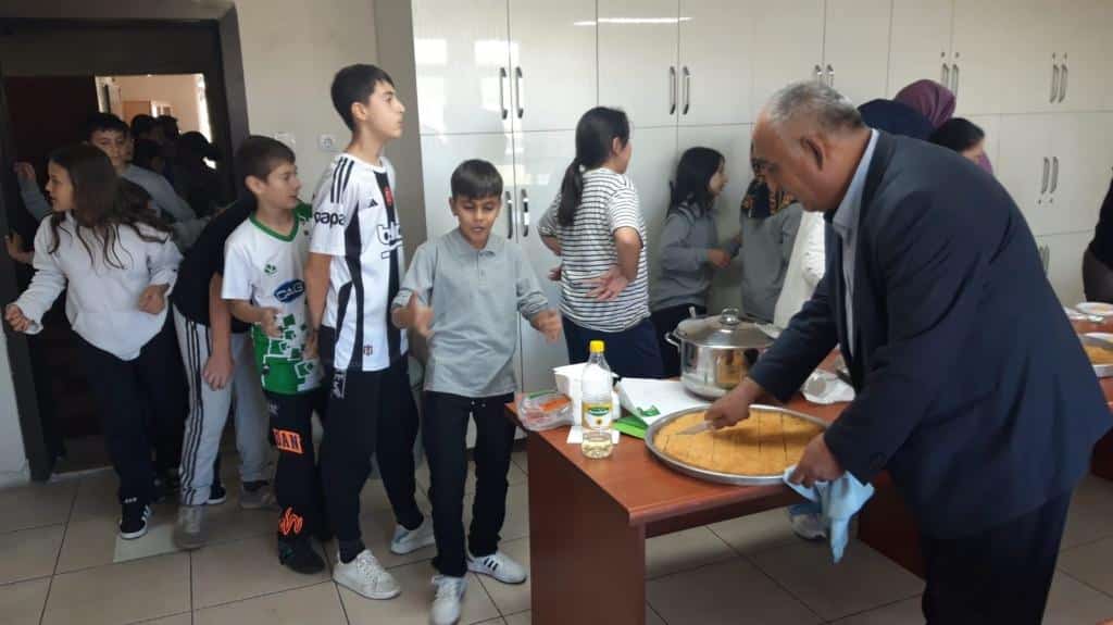 Okul Müdürü Ramazan Kahreman,Okul Öğretmenlerimiz ve öğrencilerimizle "Kadayıf Tatlısı yapma ve yeme" etkinliği düzenledik